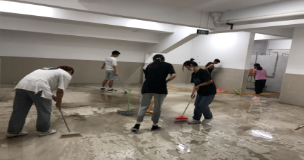 早上,每位师生都是满怀热情,大家带扫把、拖把、水桶、水管、垃圾袋等清洁用具,分工明确,不怕脏不怕累,先后打扫清理了田径场、器材室、游泳池。