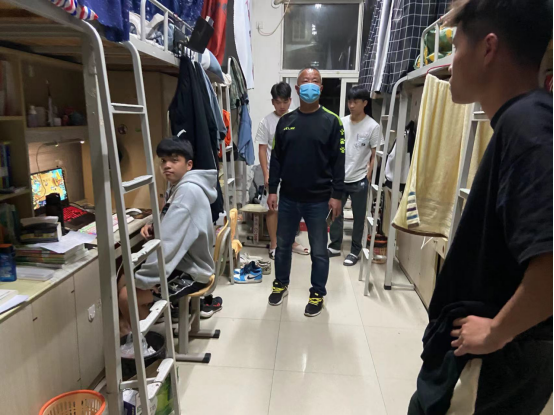 (党委书记朱昌富下宿舍检查宿舍区防疫情况)