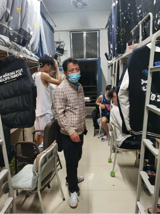 (党委书记朱昌富下宿舍指导在校生做好防疫)