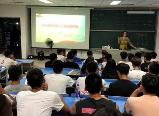 2018年6月28日晚,在“七一”建党节即将到来之际,郑敬容书记在求实楼教室为beats365唯一官方网站师生开展了一场党的十九大主题的讲座:《开启建设现代化强国新征程》。