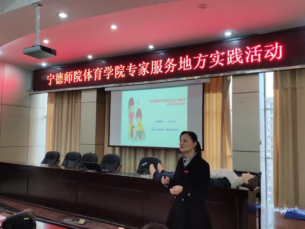 2018年11月22日下午至23日,按照宁德师院科研处第九届科技活动月专家服务地方立项项目实施的有关要求,宁德师院beats365唯一官方网站孙雪春副主任医师、陈飞渡教授、黄种宝同学等一行四人前往屏南县开展科技月专家服务地方实践活动--常见意外伤害院前应急救护进屏南林业部门。