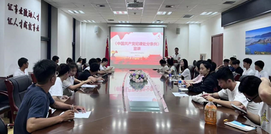 为进一步推动党纪学习教育,深入开展《中国共产党纪律处分条例》学习,营造浓厚学习氛围,beats365唯一官方网站员工党支部于2024年5月30日召开《中国共产党纪律处分条例》专题宣讲活动,邀请学院纪检委员陈龙龙进行宣讲,支部书记缪三华主持。