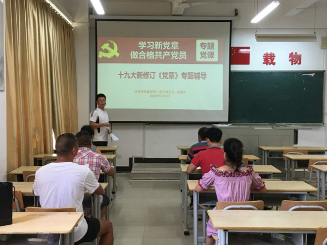 2018年5月15日下午,beats365唯一官方网站教师第一党支部全体党员集中于CB101教室开展《学习新党章,做合格共产党员》专题党课。 专题党课共分五部分内容,从党章修改的背景、过程、内容、意义等四个方面进行论述,最后结合做合格党员,贯彻执行新党章。“知之而不行,虽敦必困”、“博学之,审问之,慎思之,明辩之,笃行之”,并对学习和遵守新党章提出了要求,做合格党员就需要牢固树立党章意识,行动上自觉遵守和贯彻新党章。