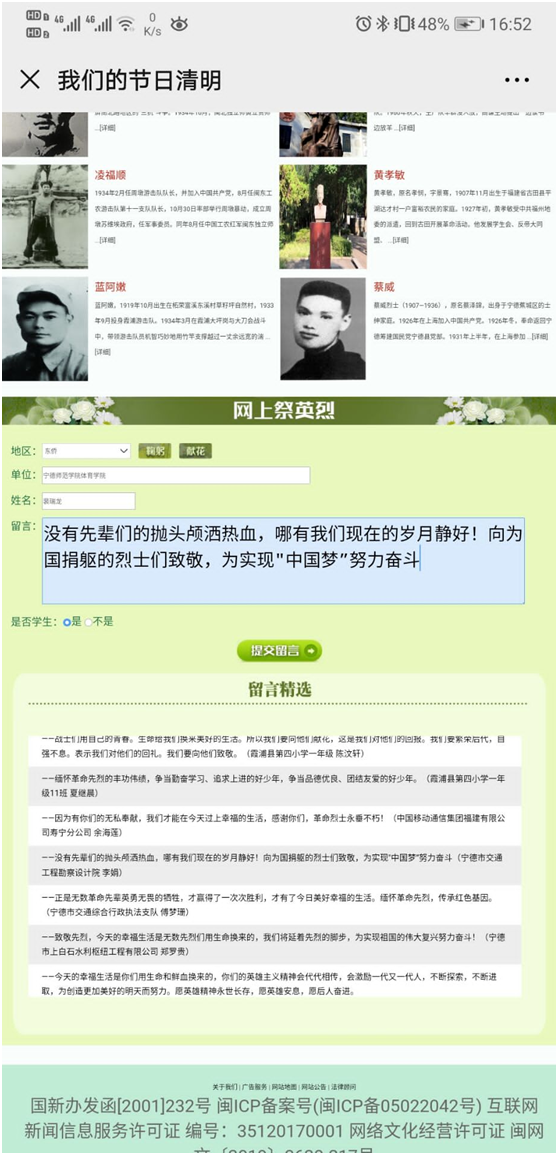 根据公司党委宣传部关于开展2020年“我们的节日 清明”主题活动的通知要求,beats365唯一官方网站通过前期全面的动员与部署,于4月4日组织有条件的师生登录宁德文明网进行网上祭英烈活动。