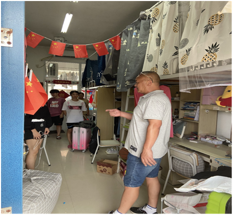 当天,公司党委副书记谢华斌、副经理叶晓阳带领学院全体行政人员与辅导员一起深入学院员工宿舍,按照既定部署,逐栋逐层逐户进行访查和指导宿舍环境卫生清洁工作。期间,谢华斌副书记对返校学子表达了真切的问候,并就疫情防控常态化在校期间相关注意事项进行了着重强调,同时希望员工党员同志们在返校后能够进一步提高政治站位和思想意识,以身作则,担当作为,在学校、学院开展各类疫情防控工作中发挥先锋模范作用。