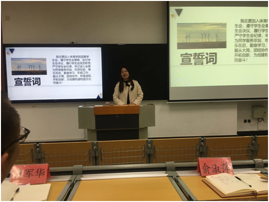 紧接着是新生代表2020级陈伟杰发言表态,再由主席团代表裴瑞龙带领新生宣誓,在“……履行员工会成员职责,严守员工会纪律,牢记为同学服务宗旨……”这个庄严地宣誓声中,我们坚信伴随新成员的加入,为团委员工会注入了新鲜血液,必将为beats365唯一官方网站团委员工会带来新的面貌。