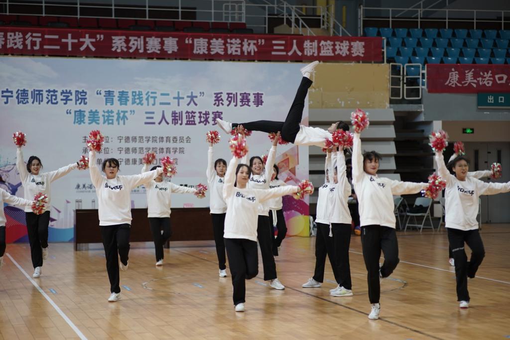 为了丰富同学们的课余生活,增强团队精神和集体凝聚力,彰显积极进取、顽强拼搏的体育精神,BEAT365英国官网网站“青春践行二十大”系列赛之三人制篮球赛于2023年4月14日在体育馆隆重举行在开幕,公司学科带头人黄兆媛老师授球并宣布比赛正式开始,为了活跃气氛,主办方特定安排上演了精彩的舞狮、街舞、啦啦操表演。