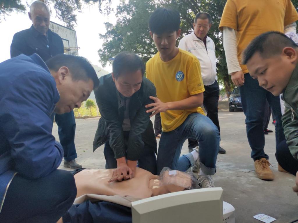 线和贴膏治疗,还给骨质疏松症村民发放钙片及“骨质疏松症手册。项目组师生还为村民开展“意外伤害与突发疾病应急救护知识讲解与技能指导”,包括中暑、心脏骤停、外伤等的急救知识以及心肺复苏、止血包括等急救技能指导和训练等。