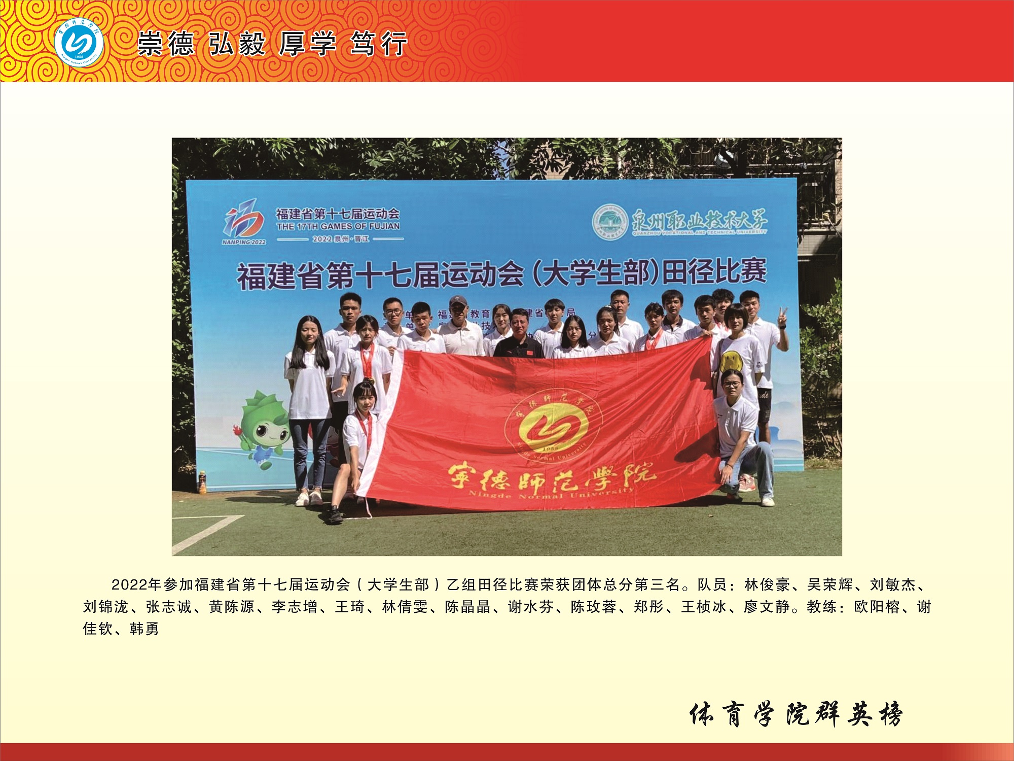 福建省第十七届运动会(老员工部)乙组田径团队总分第三名