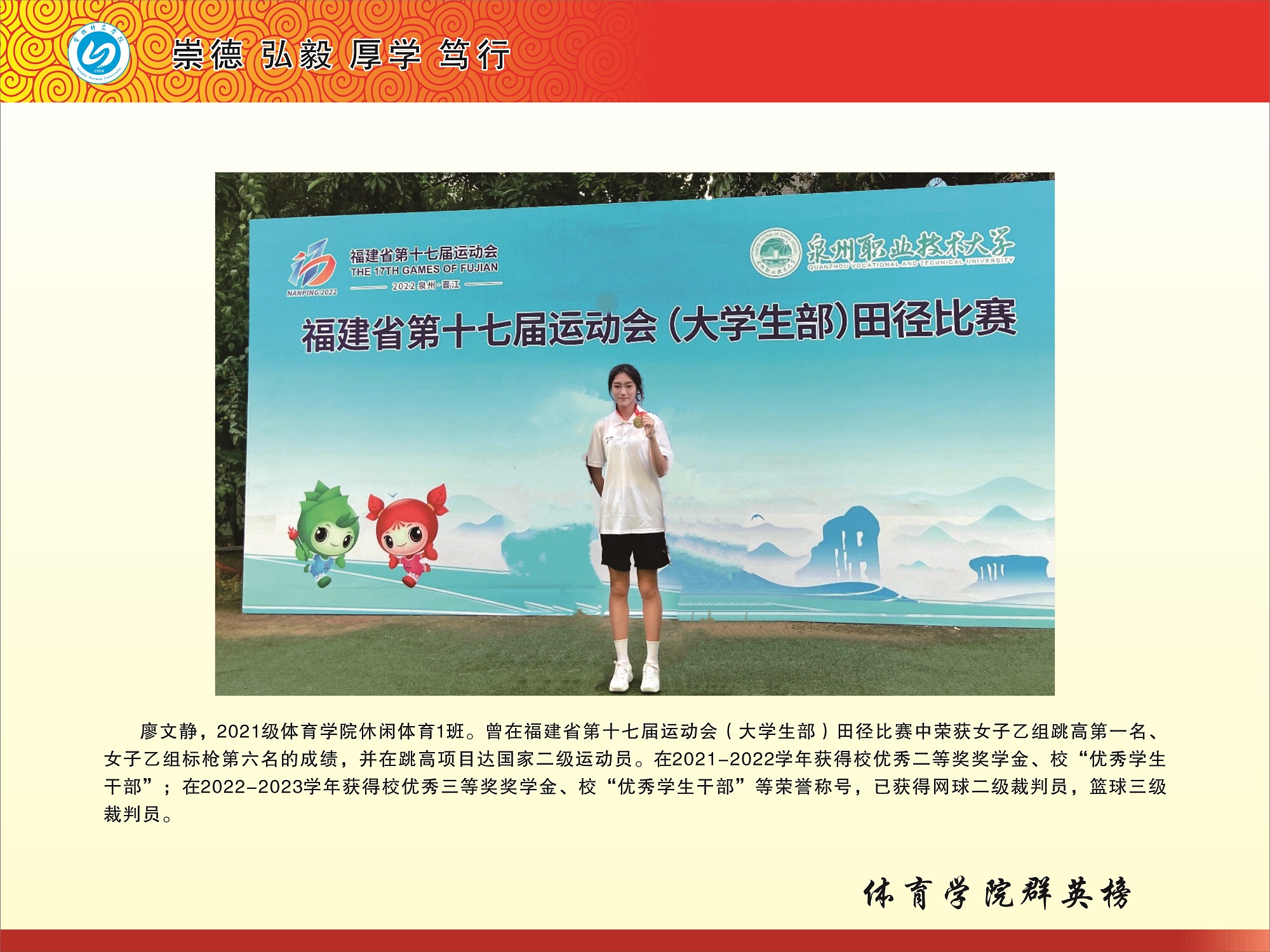 福建省第十七届运动会(老员工部)乙组女子跳高第一名