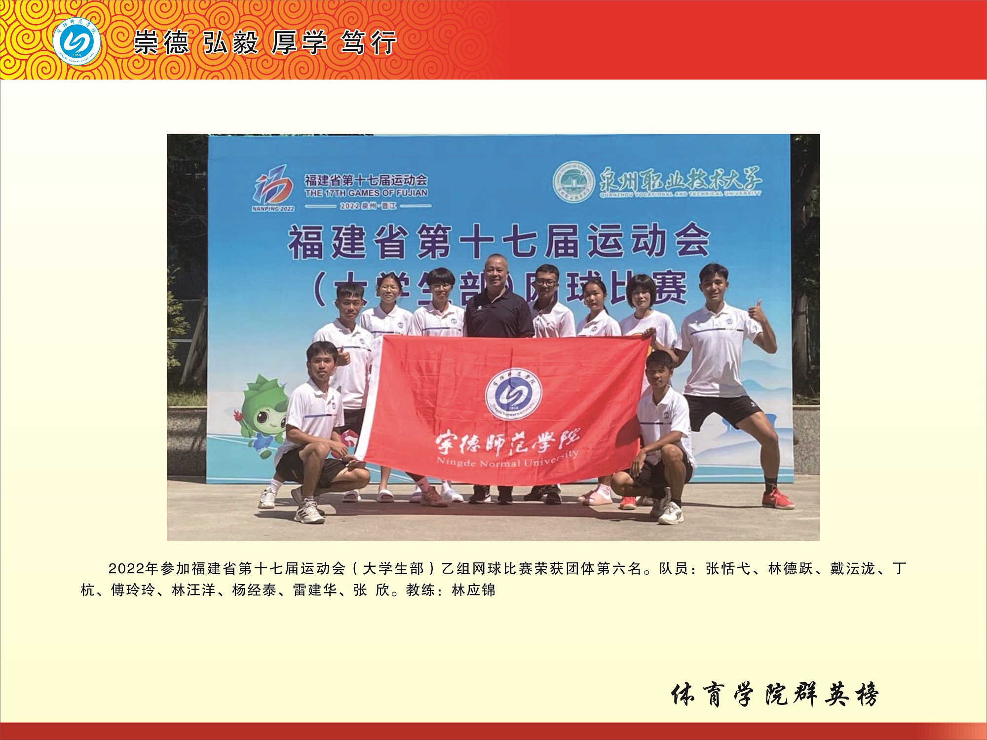 福建省第十七届运动会(老员工部)乙组网球团体第六名