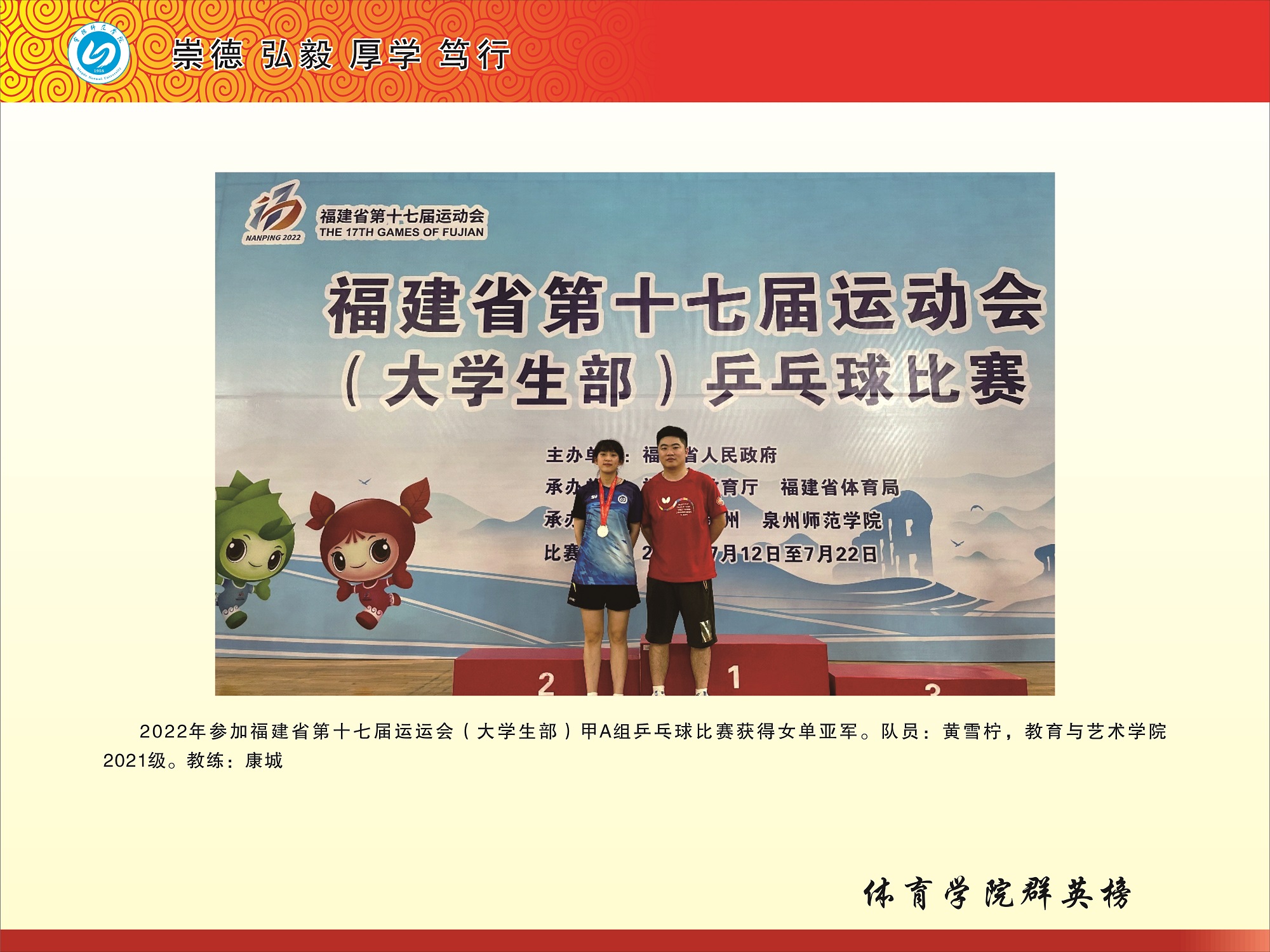 福建省第十七届运动会(老员工部)甲A组乒乓球女单亚军