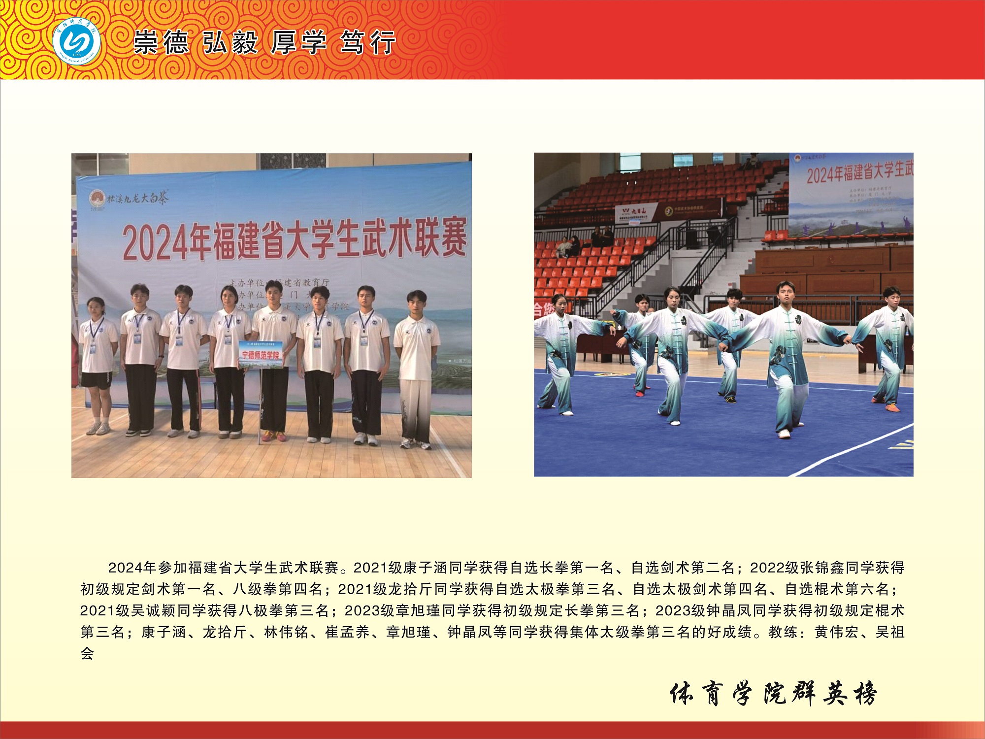 2024年参加福建省武术联赛自选长拳第一名