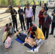 2020年以来,每年到农村、社区、学校开展“意外伤害与突发疾病应急救护知识讲解与技能指导”,包括中暑、心脏骤停、外伤等的急救知识以及心肺复苏、止血包括等急救技能指导和训练等。