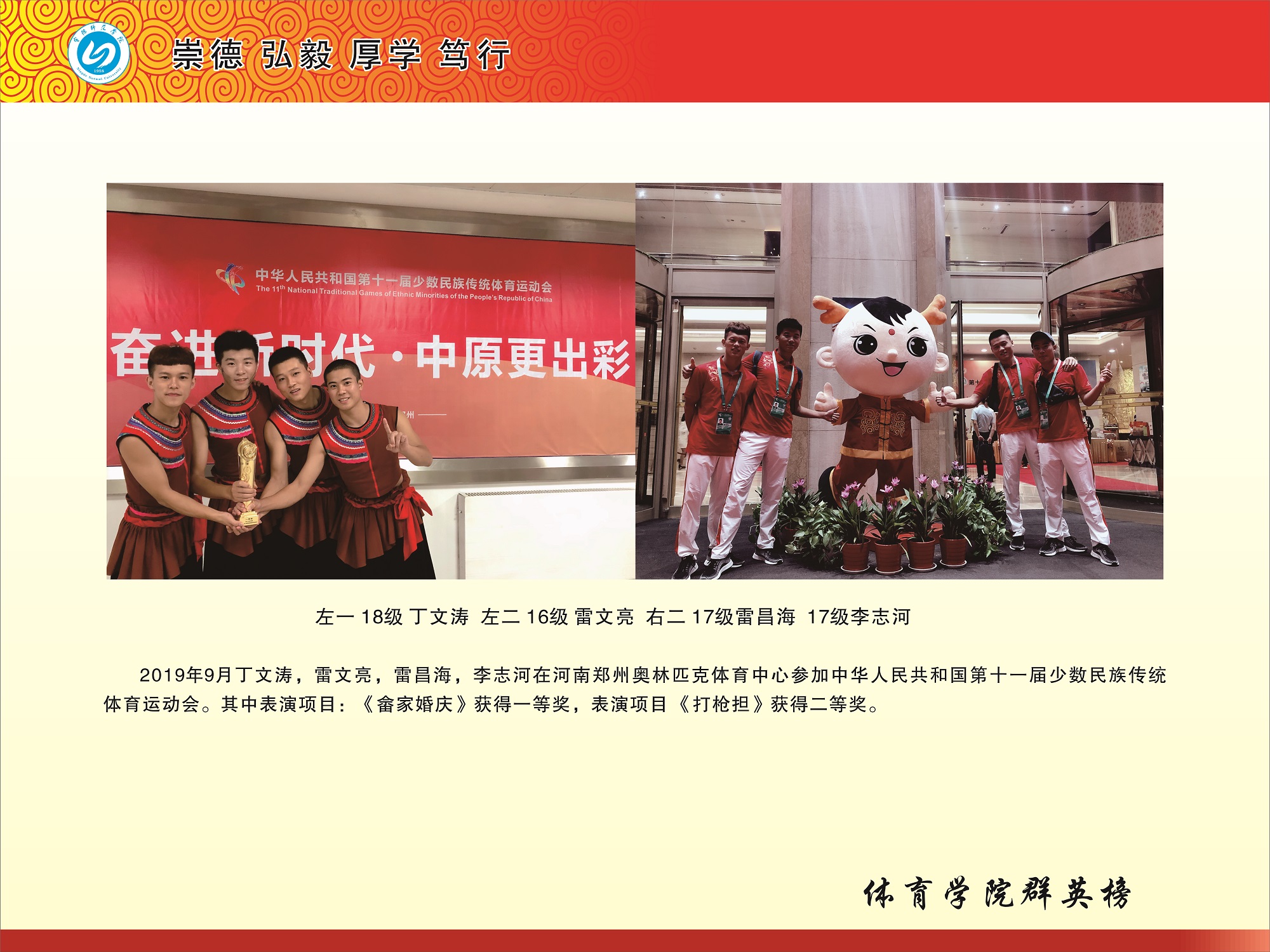 2019参加全国少数民族传统体育运动会表演项目一、二等奖