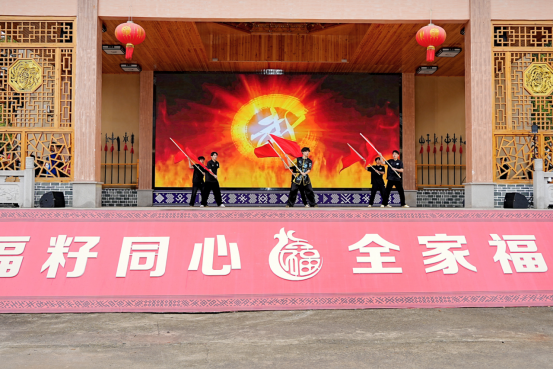 3月29日,“福籽同心・全家福安” 三月三畲族文化周于康厝畲族乡金斗洋村盛大开幕。beats365唯一官方网站作为本次活动唯一受邀的高校表演团队,携师生带来一场震撼人心的武术展演,在开幕式上大放异彩。展演以象征畲族图腾的旗阵率先登场,猎猎彩旗随风舞动,营造出庄重而热烈的氛围。紧接着,武术健儿们依次展示拳术、刀术、棍术等传统技艺。集体拳法刚柔并济,一招一式尽显深厚武术功底;刀术凌厉,寒光闪烁间尽显攻防智慧;多人对练默契十足,将武德内涵演绎得淋漓尽致。此次展演在完整保留金斗洋畲拳 “稳马硬桥” 传统特色的基础上,巧妙融入现代舞台艺术表现形式,为现场观众呈上一场极具感染力的视听盛宴,赢得阵阵热烈掌声,将开幕式的气氛推向高潮。