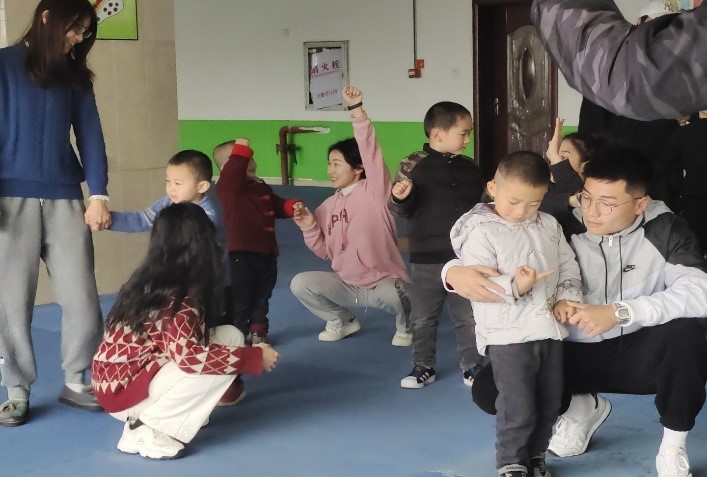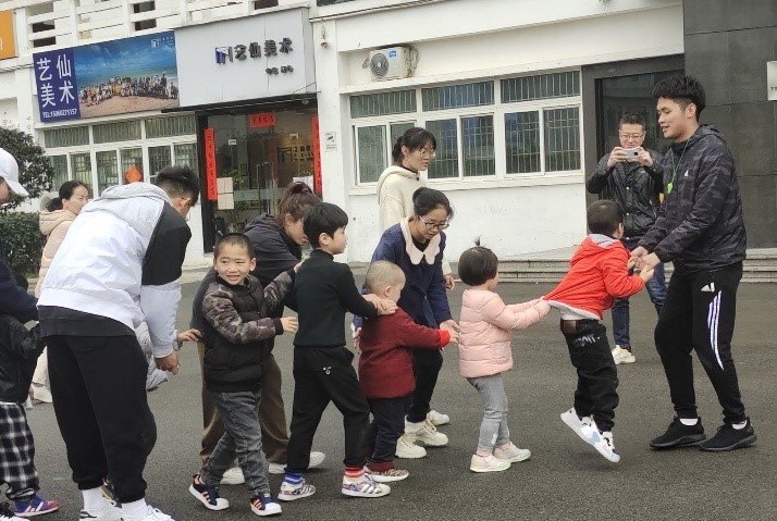 新学期伊始,正值3.5雷锋日,熠星志愿服务队积极启动志愿服务。“熠星”志愿者们提前到达体育中心,做好准备工作,等待中星宝们也陆陆续续的到来,见到了好久不见的星宝,双方都格外亲切,开火车,木头人,各式各样的小游戏让欢笑声充满了整个教室。游戏结束,老师带领小朋友做了趣味性的拉伸活动。大部分星宝都能在志愿者的协助下完成老师的布置的任务。 (跟老师做活动) (开小火车) (志愿者们合照)