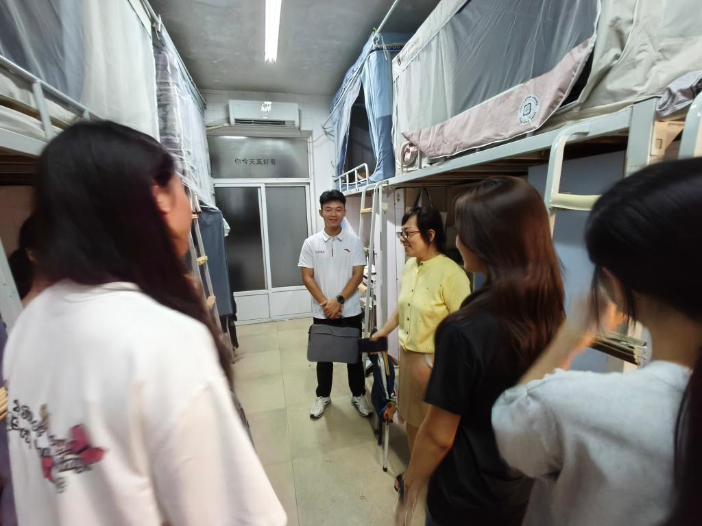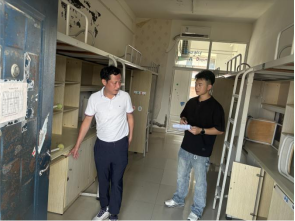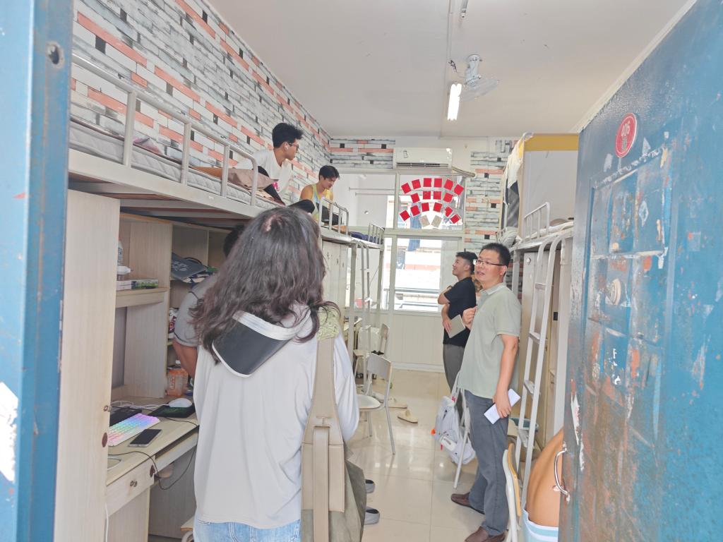 为给新生打造安全、舒适的居住环境,学院提前开展新生宿舍排查工作。工作人员逐一检查宿舍的门窗、水电、床铺、桌椅等设施,对发现的问题及时维修更换,学院书记朱昌富、经理黄兆媛和副经理李进华分别带领辅导员进行实地视察,逐一确认整改情况,力求为新生营造整洁、安心的生活环境,保障其生活质量。