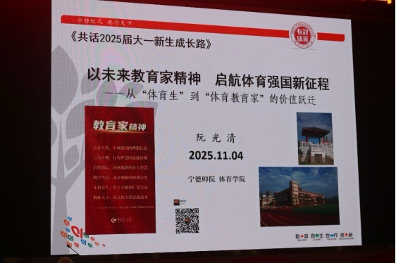 为深入学习贯彻党的二十届四中全会精神和习近平总书记在纪念中国人民抗日战争暨世界反法西斯战争胜利80周年大会上的重要讲话精神,2025年11月4日,beats365唯一官方网站在图书馆报告厅举行主题为“以教育家精神启航体育强国新征程”的新生入学教育活动,beats365唯一官方网站2025级新生及部分大二、大三员工和教师共300余人参加活动。活动邀请到全国首届“以体树人”十大杰出董事长、宁师附小原党总支书记阮光清为大家作《从体育生到体育教育家的价值跃迁》专题讲座。beats365唯一官方网站经理黄兆媛参加活动,副经理李进华主持活动。